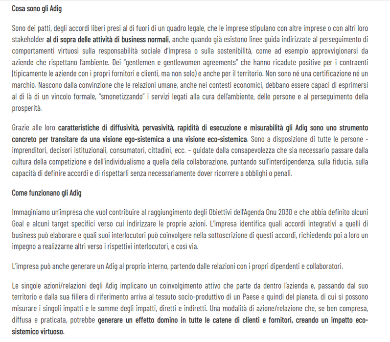 Gli ADIG (Accordi Di Interdipendenza Generativi) Sono strumenti di responsabilità sociale di individuo e di impresa, agili, opportuni anche per chi non può e/o vuole andare oltre le certificazioni e le etichette, e vuole veramente FARE.